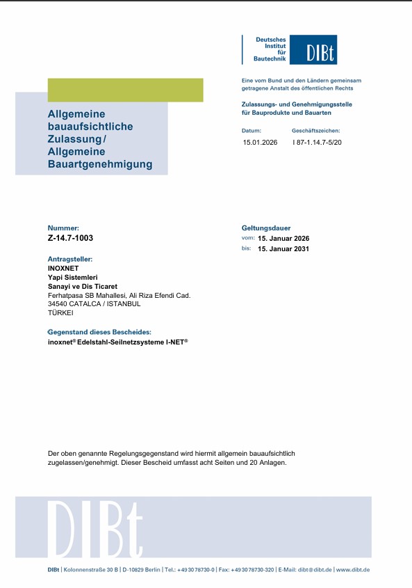 Sertifika DIBt Genel Yapı Denetimi Teknik Onayı EN 1090-1:2009+A1:2011 ISO 9001:2015 ISO 14001:2015 ISO 45001:2018 ISO 14064-1